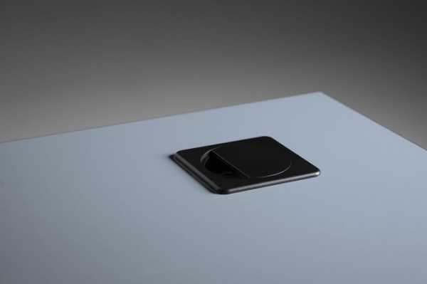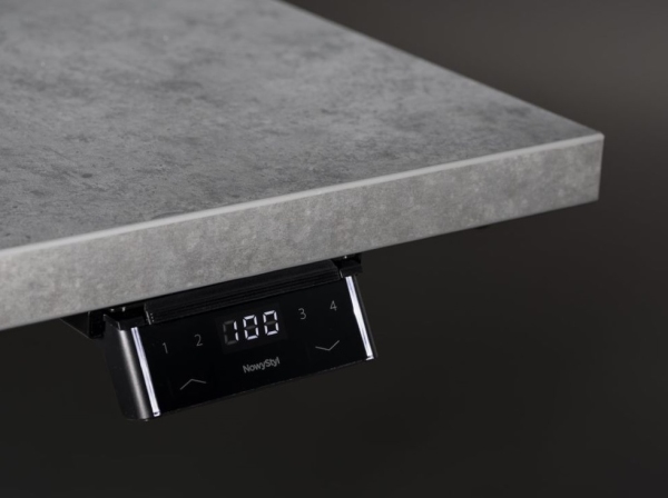 In der Grundausstattung verfügt der elektrische Schreibtisch über ein Bedienfeld mit zwei Funktionstasten zur Steuerung der Höhe Auf bzw. Ab.